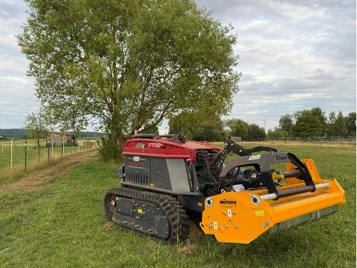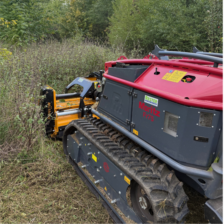 Der Müthing Schlegelmulcher bietet in Kombination mit der Raupe Moritz eine leistungsstarke Einheit für die professionelle Landschafts-, Forst- und Kommunalpflege. Als 3-Punkt-Anbaugerät ist der Schlegelmulcher optimal auf die Raupe Moritz als universellen Geräteträger abgestimmt und ermöglicht effiziente, sichere und bodenschonende Mulcharbeiten – auch in Hanglagen und auf schwierigen Untergründen.